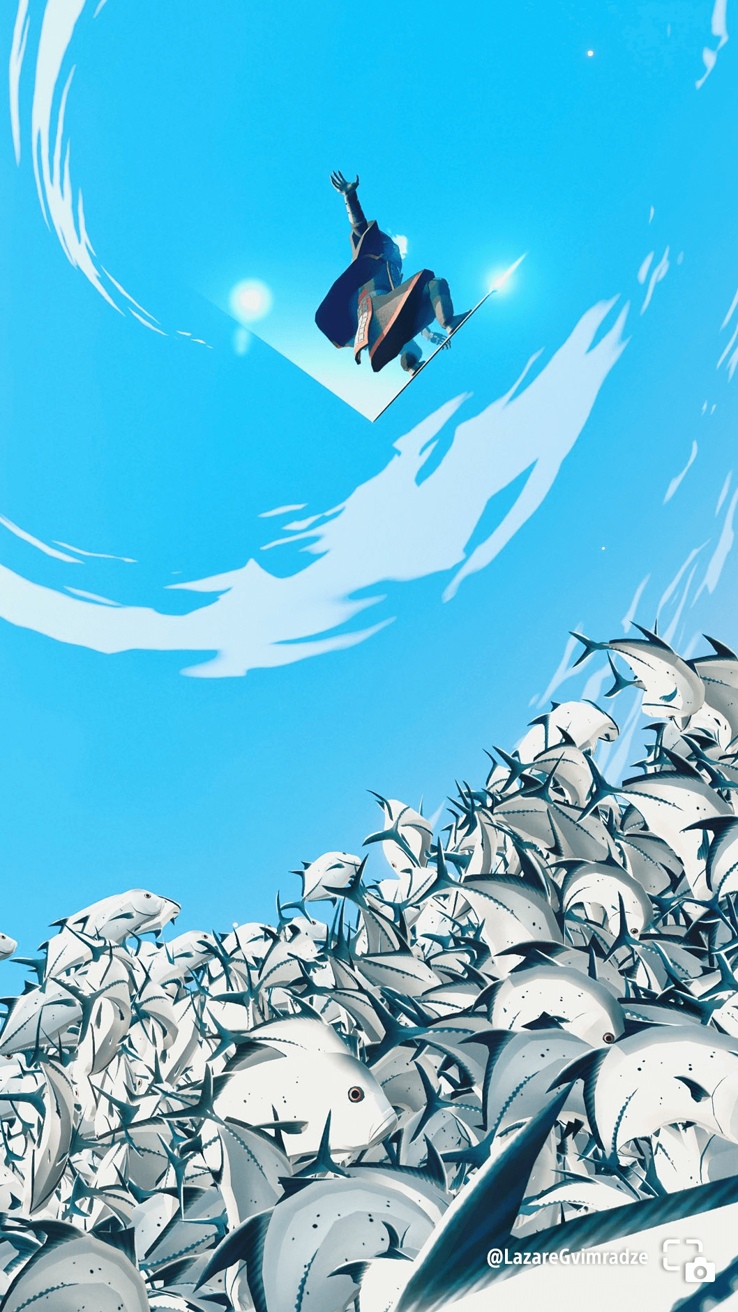 LazareGvimradze shares a look up at Wraith doing a trick over sealife on the hoversword